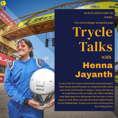 പ്രശസ്ത ഫോർമുല 4 LGB റേസർ ഹെന്ന ജയന്തുമായി ട്രൈക്കിൾ ടോക്സിൽ നടത്തിയ സംഭാഷണം > ഹെന്നയെ പ്രേക്ഷകർക്ക് വേണ്ടിയൊന്ന് സ്വയം പരിചയപ്പെ