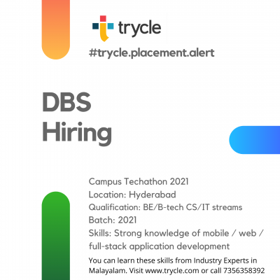 DBS - Campus Techathon 2021! DBS is a leading financial services group in Asia that has been at the forefront of delivering exceptional customer experiences. DBS Asia Hub 2 - based in Hyderabad is the bank’s first technology development center outside Singapore – is back with Campus Techathon 2021 to