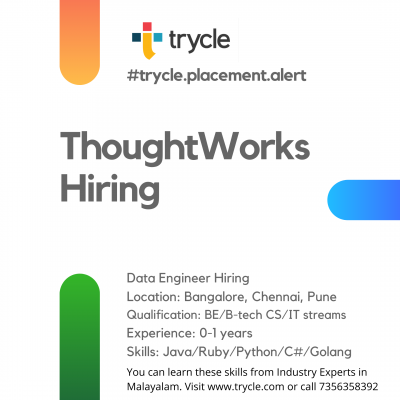 ThoughtWorks India hiring Data Engineer!! Thoughtworks India is looking for talented data engineers passionate about building large-scale data processing systems to help manage the ever-growing information needs of their clients. At ThoughtWorks, you will see passionate technologists who believe in the power of software and technology as tool
